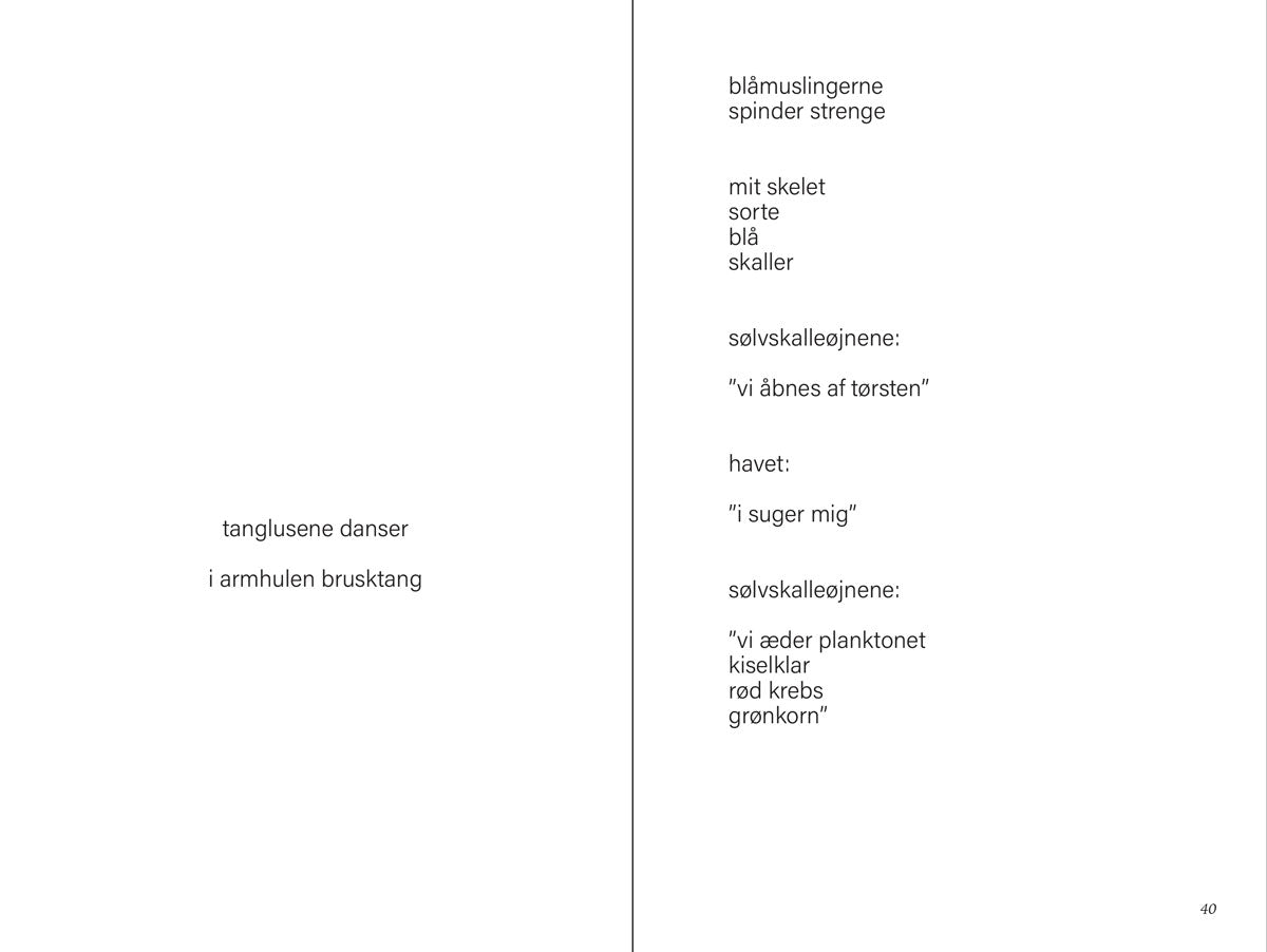 Anna Malan Jógvansdóttirs Konkhjertet er måske den mærkeligste, mest eventyrlige, forvandlelige og personlige blanding af økokritik, pigeunivers og myte. Ifølge inuittisk mytologi kaster Sedna sig i havet, og hendes fingre blir skåret af, da hun forsøger at få fat i klipperne, så hun drukner. Men i stedet for at dø forvandles hendes krop og blod til havdyr, anemoner, tang og vandmænd. Myten om Sedna, havets gudinde, forvandles her i Jógvansdóttirs digte til en sjælsom udforskning af død og skabelse, af havet som bevidsthed og bevidstheden som et hav, og gennem havet og Sedna-myten udforsker Konkhjertet, hvad havet er og kan være.